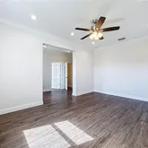 - Interior Features: Ceiling Fan(s), Crown Molding, Living Room/Dining Room Combo, Open Floorplan, Primary Bedroom Main Floor, Stone Counters, Thermostat, Walk-In Closet(s)