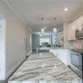 - Kitchen Features: Breakfast Bar, Cabinets White, Eat-in Kitchen, Kitchen Island, Pantry, Stone Counters, View to Family Room