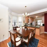 the space with natural light. The inviting living room continues the flow of hardwood
