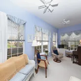 ceiling fans, abundant windows, and a sliding glass door to the exterior—ideal for