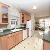 spacious eat-in kitchen features 42" cabinetry, a peninsula, plentiful counter and cabinet
