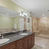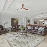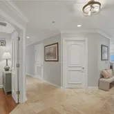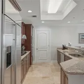 Offering 2,610 square feet, this three-bedroom, three-and-a-half-bath residence includes a dedicated office and semi-private elevator foyer entry. Architectural details such as double tray ceilings, crown molding, travertine flooring, and a gas fireplace provide a timeless foundation. The spacious chef’s kitchen features wood cabinetry, GE Monogram appliances, a six-burner gas range, granite countertops, a walk-in pantry, and a generous bar ideal for entertaining and everyday living. Ample storage and a spacious laundry room further enhance the single-family feel.