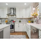 - Kitchen Appliances: Convection Oven, Dishwasher, Disposal, Free Standing Refrigerator, Gas Appliances, Island, Quartz, Range Hood, Stainless Steel Appliance