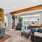 - Room Description: Window views and woodburning stove