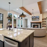 - Room Features: Built-in Cabinets, Farm Sink, Granite/Granite Type Countertop, Kitchen Island, Pantry, Water Line to Refrigerator