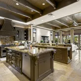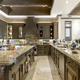 - Interior Features: Built-in Shelves, Closet Cabinets, Elevator, Kitchen Island, Pantry, Roman Tub, Volume Ceiling, Walk-in Closet
