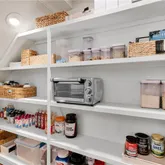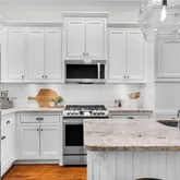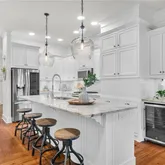 - Kitchen Features: Breakfast Bar, Cabinets White, Kitchen Island, Pantry Walk-In, Stone Counters, View to Family Room