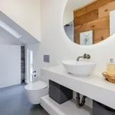 - Bath Features: Dual Flush Toilet, Low-Flow Shower(s), Low-Flow Toilet(s), Multiple Shower Heads, Radiant Heat, Shower Stall(s), Skylight/Solar Tube, Stone, Tile, Window