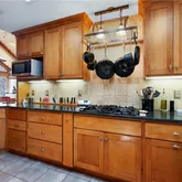 - Kitchen Features: Breakfast Bar, Cabinets Stain, Pantry Walk-In, Solid Surface Counters, View to Family Room