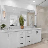 - Room Bathroom Features: Shower, Shower in Tub, Closet in bathroom, Double sinks in bath(s), Double Sinks in Primary Bath, Privacy toilet door, Quartz Counters