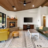 - Interior Features: Ceiling Fan(s), Eat-in Kitchen, Formal Dining, Soaking Tub, Kitchen Island, Live on One Level, Master Downstairs, Pantry, Quartz Countertops, High Ceilings, Rev Osmosis System, Walk-In Closet(s), Wash/Dry Connection, Wet Bar