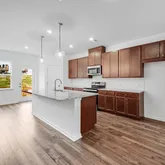 - Kitchen Features: Cabinets Stain, Eat-in Kitchen, Kitchen Island, Pantry Walk-In, Stone Counters, View to Family Room