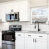 - Kitchen Features: Cabinets White, Pantry, Solid Surface Counters, Stone Counters