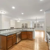 - Kitchen Features: Cabinets Stain, Solid Surface Counters, Pantry, View to Family Room