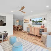 -brand new roof installed. -new front door and storm door. -New Samsung wall mounted TVs throughout. -Completely furnished with all new Steven Shell furniture and accessories. -garage repainted, including floor. -new garage door opener with keypad. -Samsung TV added in garage for entertaining. -Storage room added in garage.