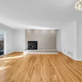 On the first floor, you'll find a well-appointed kitchen and breakfast room featuring stainless steel appliances—perfectly suited for everything from quick snacks to dinner parties. Adjacent to the kitchen is a generous open-plan living and dining area with refinished wood floors and glass doors that flood the space with natural light while leading to a private deck. The living room's focal point is a chic wood-burning fireplace (installed in 2016), ideal for cozying up on chilly evenings. Completing the first floor is a versatile den/library with an ensuite half bath, perfect for use as a home office, reading nook, or guest space.