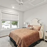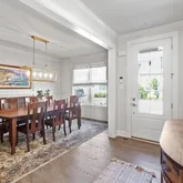 Step inside to discover 10-ft ceilings, beautiful hardwood floors, and a recently renovated kitchen featuring custom cabinetry and top-notch Thermador appliances. The first floor boasts a cozy bedroom, a full bathroom, and a serene primary ensuite with a custom closet. Upstairs, you'll find a lofted area, an additional bedroom, a full bathroom, and a versatile flex room.