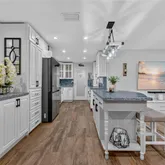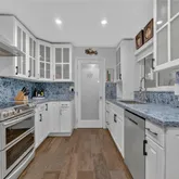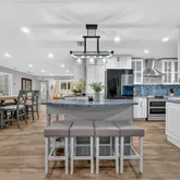 custom blue quartz countertops, stainless steel appliances, and a large hidden pantry. Enjoy the ultimate backyard
