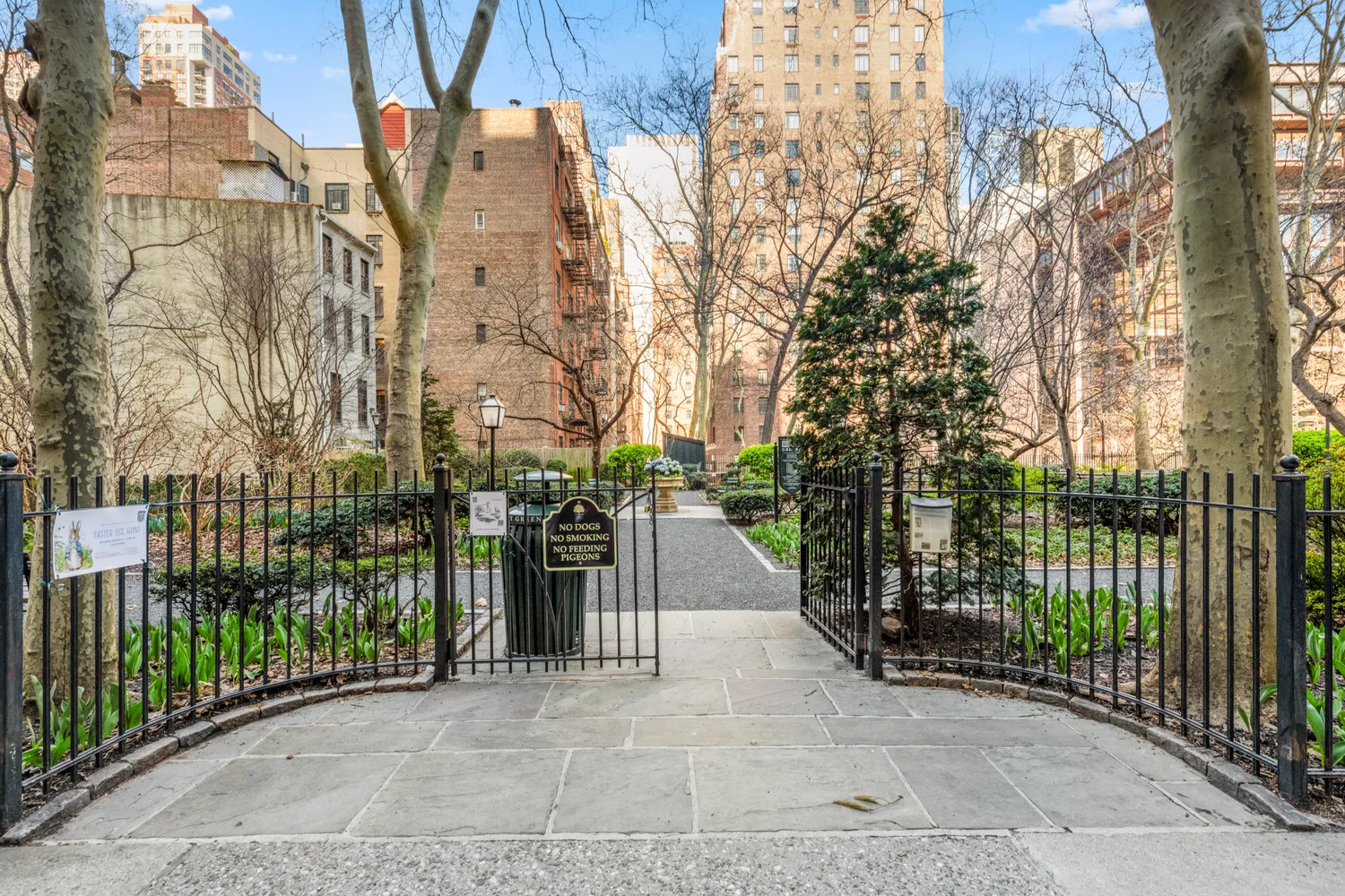 The Cloister offers 24-hour doorman, bike room, storage,and laundry, as well as access to the gardens in Tudor City.