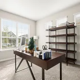 When you walk in, you have a dedicated office space. Venture to the living area and kitchen. Many windows make this space bright and airy. An exceptional blend of open concept and defined spaces makes this home comfortable and welcoming. Downstairs, you have a powder room for convenience. The resident chef's kitchen is stunning! Features a kitchen island with breakfast bar, sparkling quartz, tile backsplash, a built-in microwave+ Oven, stainless steel appliances, and a breakfast area.