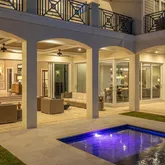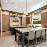 all Ensuite Bedrooms. Chef’s kitchen with professional-grade appliances. Designed for hosting, the home showcases 3 alfresco cooking areas & covered lanais on both levels. A four-car garage with lift capability plus 12-car+ motor court completes this rare 17,000 SF Estate. Perfect for buyers seeking waterfront lifestyle and presence without acreage.