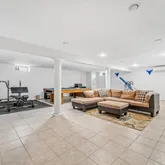 The fully finished basement adds an impressive amount of living space, currently set up as a fitness room, media lounge, and game area with space for a pool table. This large lower level creates an ideal entertainment area for family and guests, offering flexibility for recreation, hobbies, or movie nights.