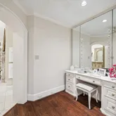 This primary closet includes a dressing area with built-in vanity with a marble top, a triptych mirror, and Hollywood-type lighting.](https://www.compass.com/m/45225cbb503f0b6576ea8ede8e671ea5daced314_img_17_de2ad/origin.webp)
