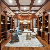Positioned on the mezzanine level, the mahogany-paneled study boasts a fireplace and a mantel with Tambour carving, a coffered ceiling, walls lined with bookcases and cabinets, an electronics pantry for faxes and printers, and a concealed coffee bar with a sink and refrigerator.](https://www.compass.com/m/45225cbb503f0b6576ea8ede8e671ea5daced314_img_19_52798/origin.webp)