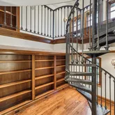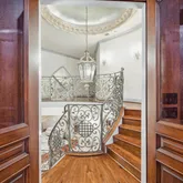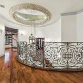 An elegant custom balustrade surrounds the second-floor landing above the staircase. A spiral staircase leading to the upper-level of the library is visible at rear.](https://www.compass.com/m/45225cbb503f0b6576ea8ede8e671ea5daced314_img_21_660d9/origin.webp)
