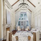 The living room’s breathtaking boiserie and plaster decoration reach to the two-story ceiling framed by egg-and-dart molding. The masonry fireplace mantel is elegantly carved. Note beamed ceiling and French doors with screens.](https://www.compass.com/m/45225cbb503f0b6576ea8ede8e671ea5daced314_img_3_95da9/origin.webp)