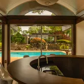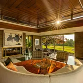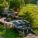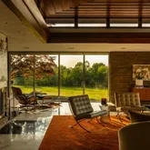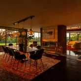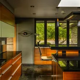 Beautifully updated and reverently maintained, this 5,300+-square-foot residence is the ideal destination for architecture buffs and those with a passion for indoor-outdoor living and entertaining. The home’s living room is a showstopper featuring a double-pitched roof lined with clerestory windows, black and white marble floors, and mid-century-appropriate natural materials, including swaths of stacked stone and wood details in teak, mahogany, cedar, and oak. Relax and entertain in the open-plan living and dining rooms, naturally divided by a two-sided fireplace, offering an exceptional space for entertaining complete with an adjacent oversized bar lounge and breathtaking views. The kitchen impresses with sleek Poggenpohl cabinetry, granite countertops, and upscale Miele appliances.