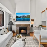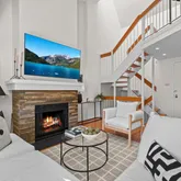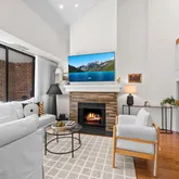 Main level features light-filled living and dining area with vaulted ceilings, skylight, and wood-burning fireplace. Floor-to-ceiling windows fill the unit with natural light, and have sliding doors that open to full-length balcony. Gourmet kitchen with high-end appliances, wine fridge, pot filler, and ample storage. New dishwasher and microwave. This level also has a convenient half bath and hall closet.