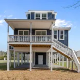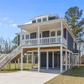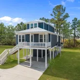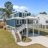 Tucked away on a serene, nature-bordered lot in the sought-after Beaufort Pointe community, this stunning brand new construction home at 3204 Whichards Beach Road offers the rare gift of waterfront tranquility without the noise and traffic that often comes with it. Lush protected wetlands buffer the rear of the property, creating a private natural sanctuary where wildlife abounds and glimpses of the water shimmer through the trees from your back deck. The property is peaceful, private, and utterly...Tucked away on a serene, nature-bordered lot in the sought-after Beaufort Pointe community, this stunning brand new construction home at 3204 Whichards Beach Road offers the rare gift of waterfront tranquility without the noise and traffic that often comes with it. Lush protected wetlands buffer the rear of the property, creating a private natural sanctuary where wildlife abounds and glimpses of the water shimmer through the trees from your back deck. The property is peaceful, private, and utterly your own. The elevated coastal exterior immediately impresses with crisp blue board-and-batten siding, a standing seam metal roof, covered front porch, and generous deck space make this home as beautiful as it is functional. Ground-level covered parking provides convenient, protected space for vehicles, boats, and gear. Step inside and discover 2,279 square feet of beautifully finished living space bathed in the softest coastal blue hues that feel as though they were pulled straight from the water's edge. Wide-plank engineered hardwood floors flow throughout, grounding each room with warmth and character. The open-concept main living area is bright and airy, with crown molding, designer ceiling fans, and dual sliding glass doors that open directly onto the back deck, blurring the line between indoors and out. The chef's kitchen is a showstopper. White shaker cabinetry stretches to the ceiling, complemented by gleaming quartz countertops, a herringbone marble tile backsplash, stainless steel appliances including a wall oven and microwave combo, a pot filler over the range, and a statement farmhouse sink framed by a sunny window overlooking the treetops. A center island provides additional prep space and casual seating. The adjacent dining area, anchored by an elegant chandelier, offers the perfect setting for both weeknight dinners and festive gatherings. The home offers four generously sized bedrooms, each with its own private ensuite bath. This creates a truly elevated standard of comfort for family and guests alike. The primary suite features a stunning spa-inspired bath with a double vanity, quartz counters, sleek matte black fixtures, and a floor-to-ceiling marble-look tiled shower that feels indulgent in every detail. The staircase, dressed in a crisp board-and-batten accent wall, leads to additional bedroom suites that are equally well-appointed with wide-plank floors, ceiling fans, and abundant natural light. As a resident of Beaufort Pointe, you'll enjoy access to the community boat launch, dock, and boardwalk -- putting the Pamlico River just moments away, whenever adventure calls. Brand new. Move-in ready. Beautifully built. This is the waterfront lifestyle, reimagined.