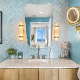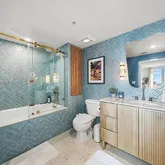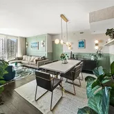 Experience "Blue Mind" tranquility with unobstructed southern water views of the bay and Brickell skyline from your private balcony. This expansive 1,227 sq. ft. split-bedroom plan maximizes privacy, featuring soaring 11-foot ceilings and high-end finishes. The gourmet kitchen is a designer showpiece with contemporary glossy white Italian cabinetry, imported granite countertops, and premium stainless steel appliances. ONE MIAMI WEST AMENITIES: