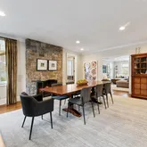 - RoomDescription 1: Entry, living room, formal dining room with wood burning fireplace, powder room, eat-in kitchen with breakfast area open to a large family room with french doors open to the deck, home office, guest suite with full bathroom, laundry room, mudroom with access to garage