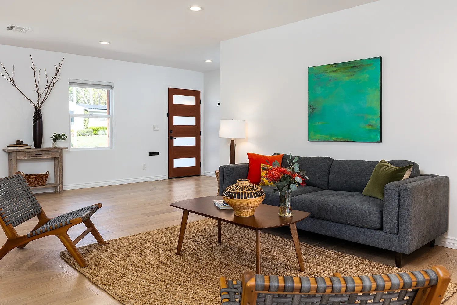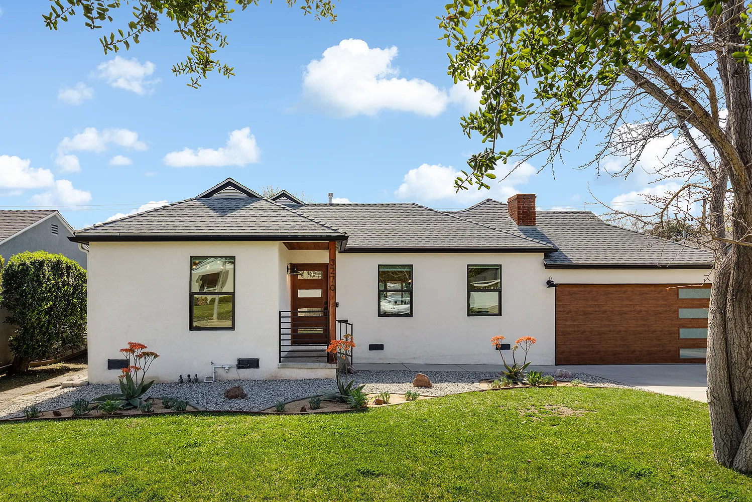With smooth stucco exterior walls, dual pane windows, and recently refreshed fire-hardened landscaping, the home presents a crisp first impression, both polished and practical.