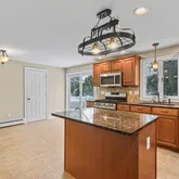 - Kitchen: Center Island, Sliding Door, Floor - Porcelain, Newer, Granite/Stone Counter, Eat-In