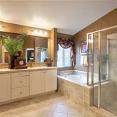- Room Bathroom Features: Bathtub, Shower, Shower in Tub, Closet in bathroom, Double sinks in bath(s), Double Sinks in Primary Bath, Hollywood Bathroom (Jack&Jill), Jetted Tub, Linen Closet/Storage, Main Floor Full Bath, Separate tub and shower, Soaking Tub, Stone Counters, Walk-in shower