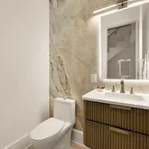 At the heart of the home is a show stopping chef’s kitchen, equally at ease hosting intimate dinners or large-scale entertaining. Premium appliances and a separate catering kitchen bring both beauty and functionality together in one central gathering space. The expansive lower level provides a large-format retreat, complete with a theater room, gym, and a private guest suite with its own entrance. The upper level is anchored by a luxurious primary suite, featuring a spa-inspired bath and energy-efficient systems throughout. Additional bedroom suites and versatile living spaces provide endless options for personal comfort or professional use.