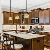 - Kitchen Features: Breakfast Bar, Breakfast Room, Cabinets Stain, Kitchen Island, Pantry, Stone Counters, View to Family Room