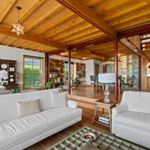 - Room Features: Beams,Built-Ins,Combination Liv/Din Rm,Fireplace,Hardwood Floor