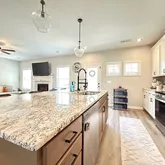 - Property Facts: Like new 2-year-old Craftsman-style home w/ 5BR/3BA on a large lot! Bright open floor plan w/ family room, fireplace & natural light. Kitchen features white cabinets, granite countertops, tiled backsplash, ss appliances, large island & walk-in pantry. Sep. dining room. 1BR/1BA on main. Upstairs offers 4 additional bedrooms, 2 baths, & laundry. Spacious primary suite with nook, dual vanities, quartz counters, tub/shower & walk-in closet. Covered patio, 2-car garage, fridge, washer, dryer & shed.