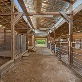 • 5-stall equestrian facility with arena, paddocks, tack room, and fenced pasture