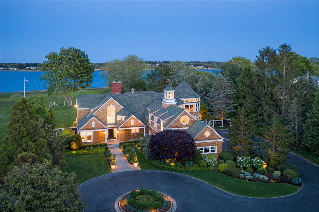 Perfectly situated on 3 waterfront acres with stunning Narragansett Bay views - Windy Acres is a curated, private compound with bespoke finishes and meticulous attention to detail. The multiple buildings offer varied entertaining spaces that have been exquisitely designed indoors and out. The main house underwent a thorough renovation and offers stunning vistas from sun-filled rooms with gracious architectural details. The new chef's kitchen features a butler's pantry, quartz counters and a Thermador...Perfectly situated on 3 waterfront acres with stunning Narragansett Bay views - Windy Acres is a curated, private compound with bespoke finishes and meticulous attention to detail. The multiple buildings offer varied entertaining spaces that have been exquisitely designed indoors and out. The main house underwent a thorough renovation and offers stunning vistas from sun-filled rooms with gracious architectural details. The new chef's kitchen features a butler's pantry, quartz counters and a Thermador appliance suite. This opens to the spacious family room with a soaring hexagonal ceiling. The living room features a custom floor to ceiling fireplace and lovely views of the pool, yard and Bay. An entertainer's dining room, spacious office and mudroom with custom appointments complete this floor. Head up either one of two staircases to the second floor featuring a primary suite with a water-facing balcony and a dramatic floor to ceiling wall bath with steam shower. An additional en-suite bedroom boasts 280 degree views. Two more bedrooms offer high ceilings, private balconies and a shared bath and the fifth en-suite bedroom provides more stunning vistas. The newly designed 1287 sq ft Carriage House boasts a large main floor living area, full bath and bedroom on the 2nd floor. The pool & spa feature new hardscape, fire pit and cabana of 1100 sq ft under a mahogany ceiling with full bath, expansive outdoor kitchen and bar. A mooring is included in this very special offering.