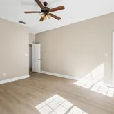 - Interior Features: Ceiling Fan(s), Living Room/Dining Room Combo, Open Floorplan, Primary Bedroom Main Floor, Solid Wood Cabinets, Stone Counters, Thermostat, Walk-In Closet(s)