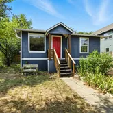 Two spacious bedrooms include custom closet organizers for smart storage. Outside, the large lot offers a huge backyard shaded by mature trees—ideal for entertaining, relaxing,...This charming updated bungalow combines classic character with modern convenience. Inside, the open kitchen and living room layout creates the perfect space for gathering. The kitchen features updated appliances, fresh countertops, and stylish cabinetry, while original hardwood floors run throughout the home for timeless appeal.