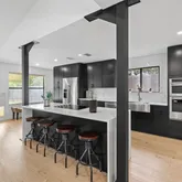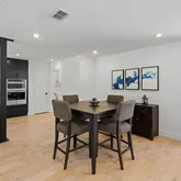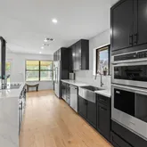 - Room Description: Updated kitchen with built in electric oven and island cooktop. Gorgeous quartz countertops include beautiful waterfall kitchen island with breakfast bar.