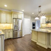 - Room Features: Crown Molding, Fireplace - Wood Burning, Flooring - Wood, Lighting - Recessed