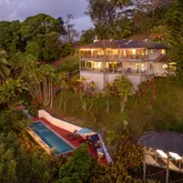 Perfect as a multi generational family home or currently permitted since 2019 as Marjorie's Kauai Inn. Live upstairs in the Host quarter's Primary ensuite set at the end of the hallway from the spacious Living & Dining areas that open to a well stocked Gourmet Kitchen and a HUGE covered Lanai - perfect for communal outdoor dining where breakfast is conveniently served Monday thru Saturday, as the owner obtains income from three deluxe ground floor suites, each with private entrances that offer both privacy and flexibility. "SUNSET VIEW" suite includes exclusive access to a private hot tub nestled on a deck above the gardens, providing a peaceful spot to enjoy the stars or unwind at the end of the day. "TRADE WINDS" suite offers a king bed, a porch swing and a bath reminiscent of the Queen Mary. "VALLEY VIEW" suite boasts the largest of the private covered lanais. Located just minutes from Poipu Beach, Spouting Horn, and the shops and restaurants of Old Koloa Town, this property allows for quick access to some of the island’s most beloved attractions while still offering a peaceful and quiet home base. Whether you are looking to unwind poolside, explore the island, or host friends and family, Marjories Kauai Inn is a rare opportunity to own a property that offers both lifestyle and income potential in one of Kauai’s most scenic settings.