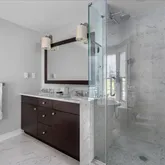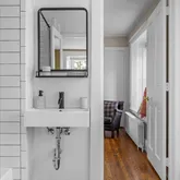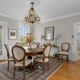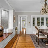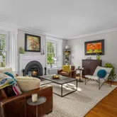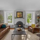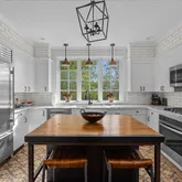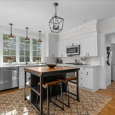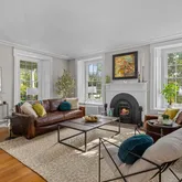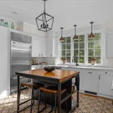 The avant-garde kitchen is a true showpiece, appointed with sleek cabinetry, new Italian marble countertops, a brick backsplash, and new appliances. Perfectly integrated with inviting dining and living areas, the space is ideal for both everyday living and stylish entertaining. All bathrooms throughout the home have been fully renovated, reflecting a cohesive blend of luxury and modern design.